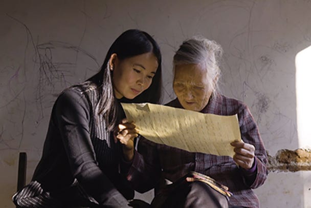 “Visually it was easy to learn, with each character representing one syllable; but to sing it well (for it was sung rather than spoken) required knowing the local dialect. It was therefore a natural medium for rural women denied education, as they all were until Mao’s time. Young unmarried women especially would meet to sing and sew nushu on fans, handkerchiefs and belts. When a bride left to live in the groom’s house, the “Third Day Books” of commiserations and hopes for her were naturally written in nushu, women to women.”*